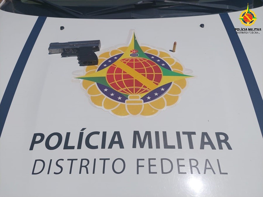Os policiais militares do 9º Batalhão prenderam um homem por porte ilegal de arma de fogo nesta sexta-feira (23), por volta das 11h30, no Gama.