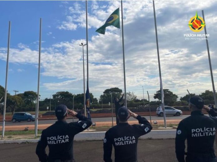 A Polícia Militar do Distrito Federal (PMDF) realizou, na manhã desta sexta-feira (24), a solenidade de hasteamento da Bandeira Nacional, no Pátio do Palácio Tiradentes, localizado no Setor Policial Sul. A solenidade ficou a cargo da Secretaria de Relações Institucionais e do Centro de Comunicação Social da PMDF.