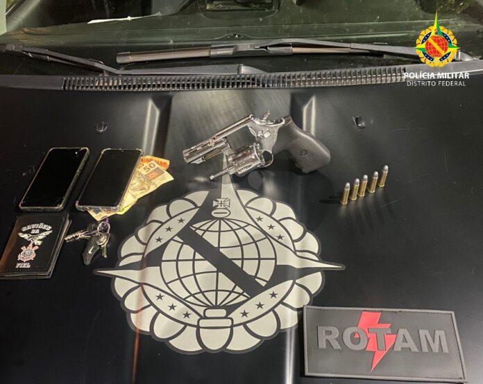 Policiais militares da Rotam prenderam um homem de 33 anos por porte ilegal de arma de fogo, por volta de 1h30 desta quinta-feira (6). O suspeito foi detido durante uma abordagem a veículo com dois ocupantes na QNM 28, em frente ao Hospital Regional de Ceilândia.