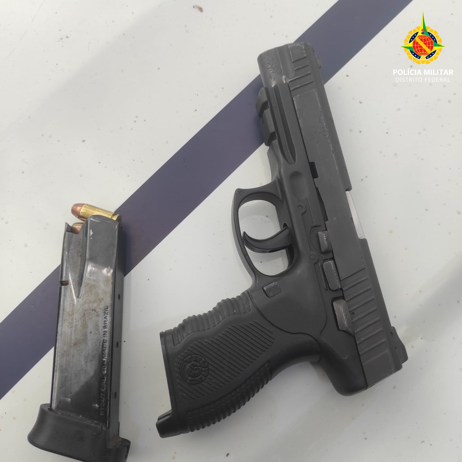 Motorista e passageiro foram abordados e dentro do carro foi encontrada a pistola municiada. O passageiro assumiu a propriedade da arma.
