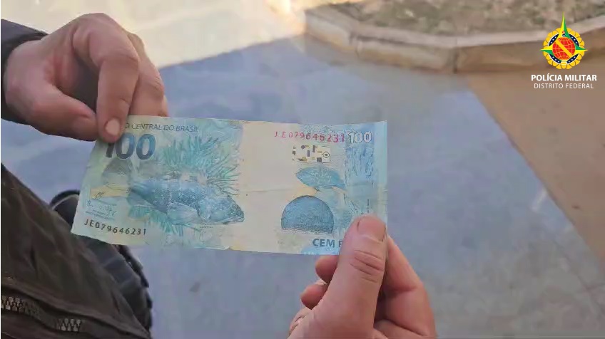Policiais militares do 8º Batalhão detiveram um homem com dinheiro falso no Centro de Ceilândia, às 13h desta quinta-feira (22). O suspeito foi visto no CNM 01, próximo a uma sorveteria. Assim que percebeu que seria abordado, ele dispensou uma nota de R$ 100,00 falsa.