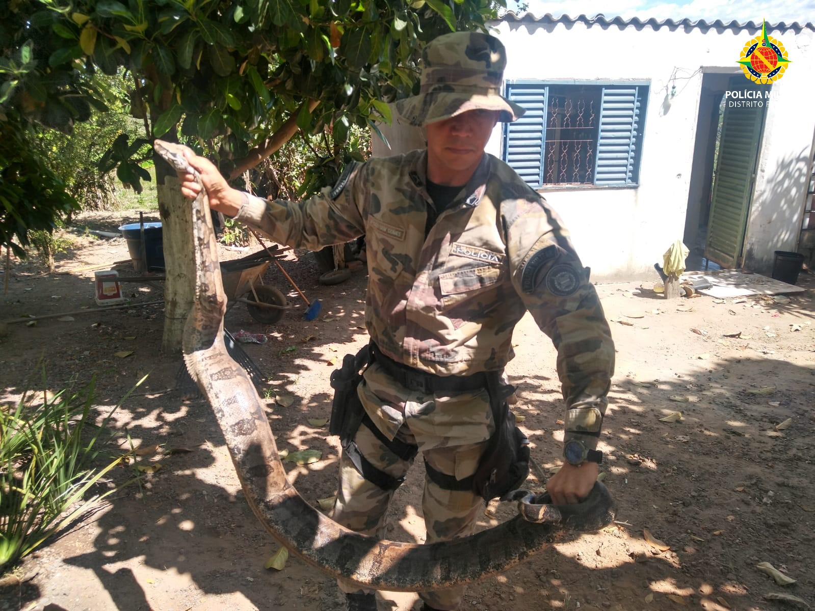 Mais cedo uma equipe do Batalhão de Polícia Militar Ambiental (BPMA) foi acionada por um morador do Núcleo Rural Jerivá em São Sebastião. Ele informou para a PMDF que tinha uma jiboia em seu quintal. A serpente estava com bom estado de saúde e foi solta em seu habitat longe das residências.