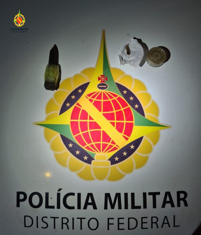 Durante abordagem, um punhal foi encontrado em sua cintura. Além disso, uma porção de maconha também foi localizado.
