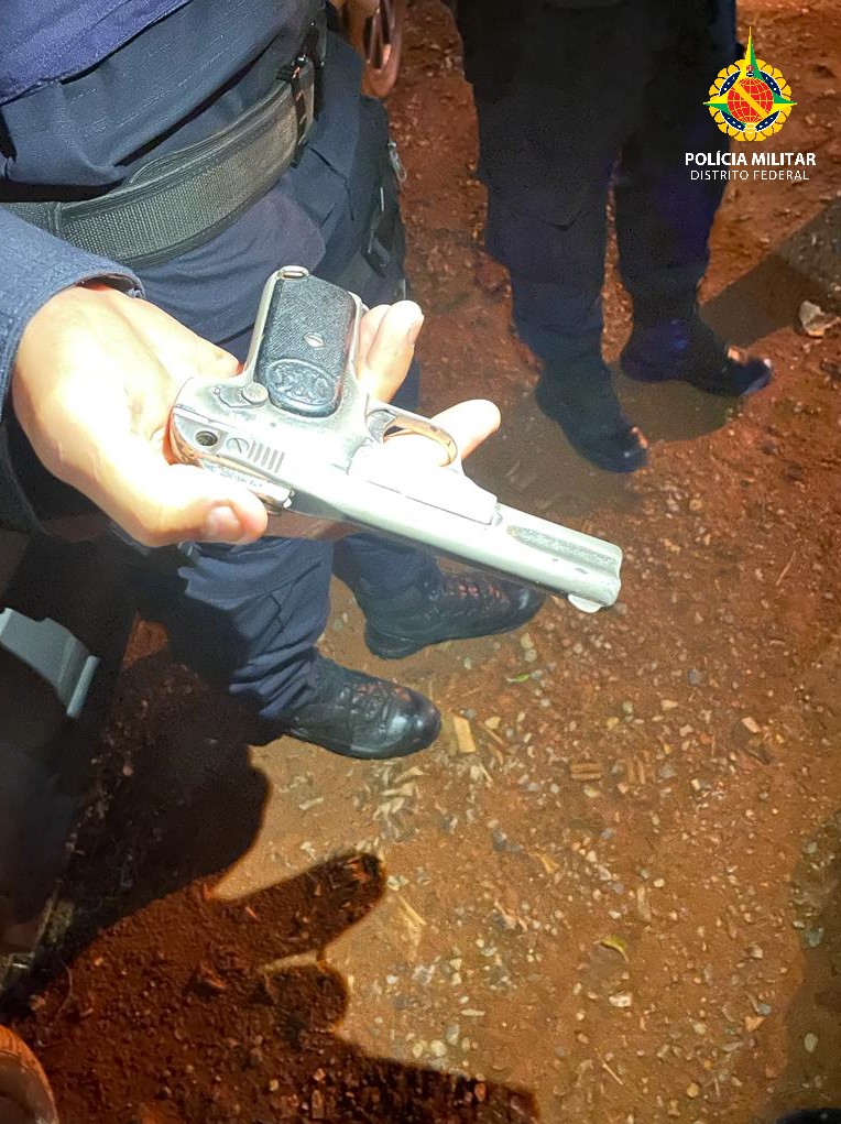 O suspeito tentou despistar os policiais desviando para uma estrada de chão e caiu. Ele foi detido e recebeu os primeiros socorros do CBMDF. O suspeito portava uma pistola calibre 32, com sete munições intactas.