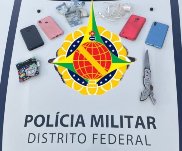 O suspeito foi encontrado, por volta de 6h na quadra 8, andando de bicicleta. Na busca pessoal a equipe do Gtop 34 encontrou nas vestes do abordado uma faca, quatro celulares, R$ 46,00, um carregador de celular, dois fones de ouvido, e uma carteira com documentos pessoais.
