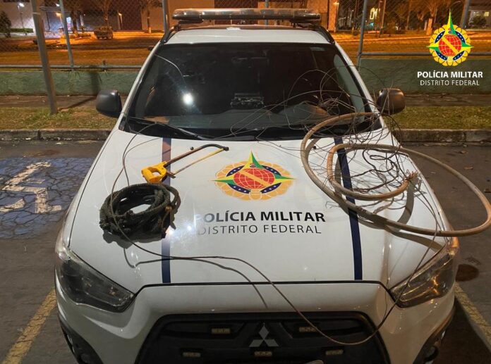 Policiais militares do 3º Batalhão detiveram um homem por furto cabos de energia do Complexo Aquático Cláudio Coutinho em Brasília. Por volta da 0h desta segunda-feira (11), a PMDF recebeu a denúncia do furto em andamento. Ao chegar no local a equipe policial se deparou com o suspeito em posse dos cabos furtados, um arco de serra e uma corda.