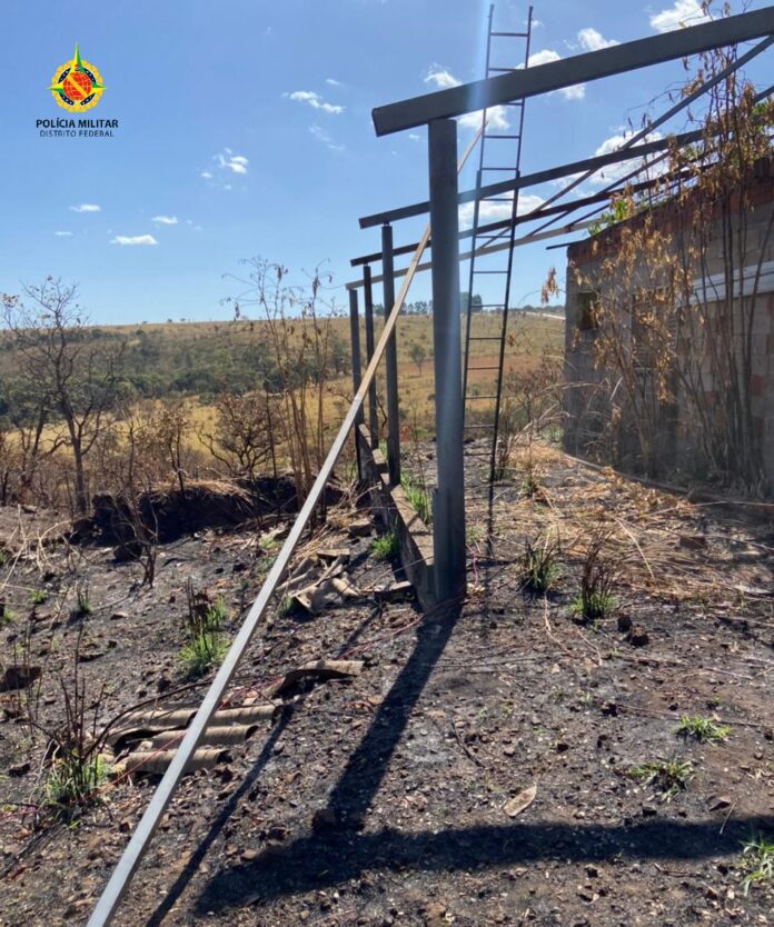 Chegando ao local, os policiais avistaram o homem utilizando um caminhão para carregar telhados e materiais de construção furtados.