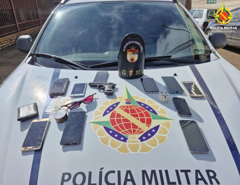 Na residência do suspeito foram encontradas porções de substâncias como crack e haxixe, além de vários celulares e um simulacro de arma de fogo. Os envolvidos foram conduzidos à 4ª Delegacia para registro do flagrante.