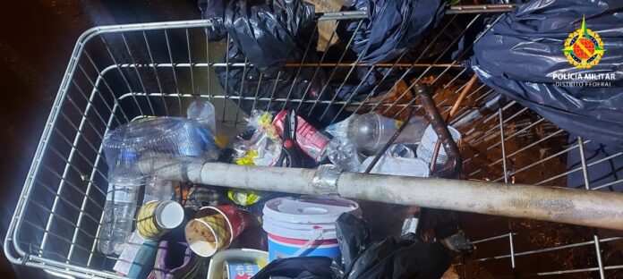 O gerente do estabelecimento forneceu aos policiais as características do autor. Ele foi encontrado próximo a favela da quadra 910 Norte, sujo de óleo e empurrando um carrinho de supermercado contendo os tubos subtraídos.