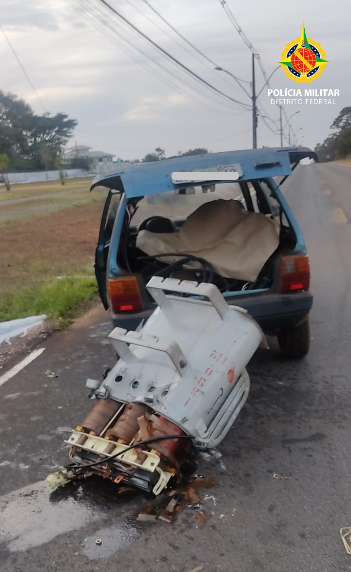 A PMDF foi acionada por moradores do Park Way que visualizaram um homem tentando colocar o transformador de energia da rede elétrica dentro do veículo.