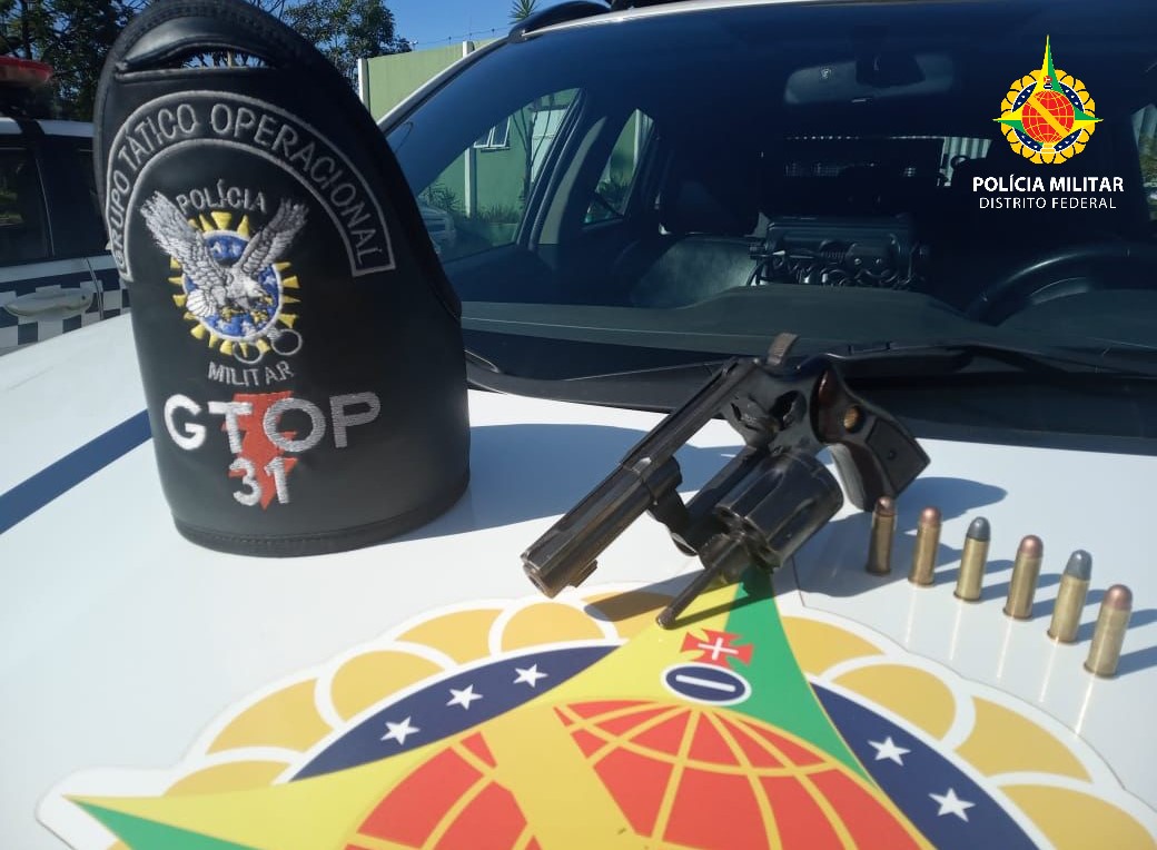 O detido portava um revólver calibre 38 com seis munições intactas. A PMDF prestou o apoio e conduziu o detido à 26ª Delegacia.