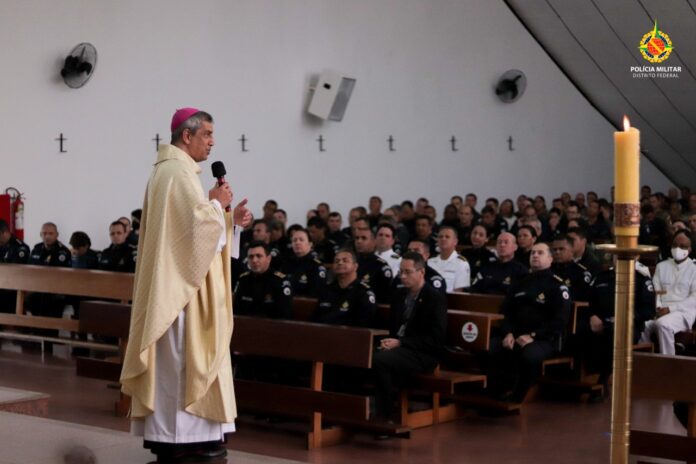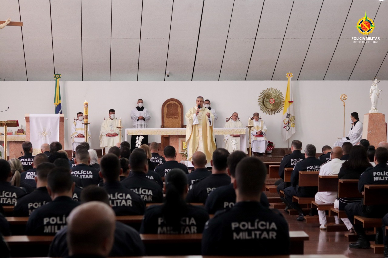A Polícia Militar do Distrito Federal realizou uma Missa em Ação de Graças em comemoração aos 213 anos da corporação. A celebração foi na Catedral Rainha da Paz, no Setor Militar Urbano, na manhã desta sexta-feira (20).