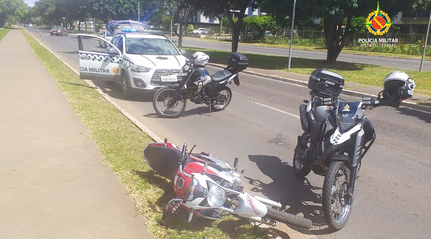 Os militares passavam pela área central de Taguatinga quando viram o condutor transitando com a motocicleta sem os retrovisores, em alta velocidade e com o escapamento produzindo grande ruído, seguindo sentido Ceilândia.