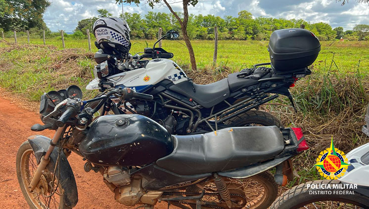 Policiais militares do Batalhão de Policiamento Rodoviário (BPRv) recuperaram uma motocicleta na DF 435 em Brazlândia, na tarde de hoje (2).