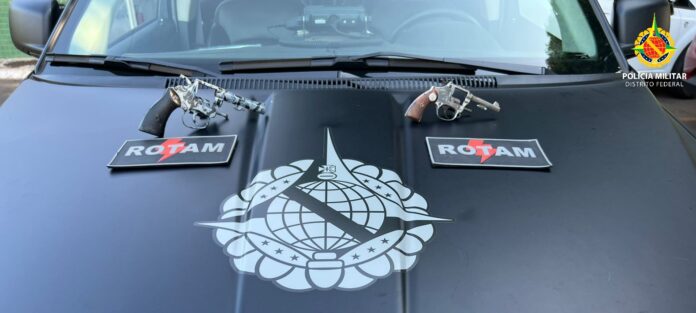 Um homem foi detido com duas armas de fogo na tarde desta quinta-feira (2) no Gama. Policiais militares da Rotam foram informados por populares que dois homens circulavam armados em uma moto, no Setor Oeste. O veículo foi reconhecido pela equipe da PMDF no comércio da 21/24, porém com um só ocupante.