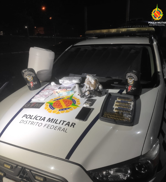 Policiais militares do 11º Batalhão prenderam um homem por porte ilegal de arma de fogo e tráfico de entorpecentes na QR 423, Via Pública, por volta das 18h, desta segunda-feira (28).