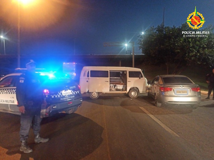 Policiais militares integrantes do Grupo Tático Operacional 45 faziam patrulhamento na EPIA Sul, em frente ao Núcleo Bandeirante, no início da noite de hoje (31), quando um VW Kombi onde o motorista evitou ultrapassar a viatura da PMDF.