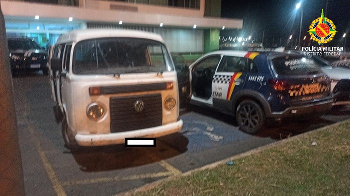 O indivíduo tentou fugir correndo entre os carros, mas acabou sendo preso em frente a Polícia Rodoviária Federal da EPIA Sul. Os policiais descobriram que o carro era furtado e estava com a placa de outra Kombi. O preso já era reincidente no crime de adulteração de sinal identificador de veículo com passagens por receptação qualificada e roubo de veículo.
