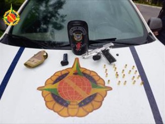 Durante a abordagem, foi localizado com o condutor da caminhonete uma pistola Taurus cal 380, com dois carregadores e 20 munições.