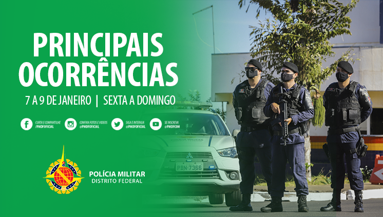 Clique na imagem para conferir as principais ocorrências da PMDF deste final de semana (7 a 9 de Janeiro):