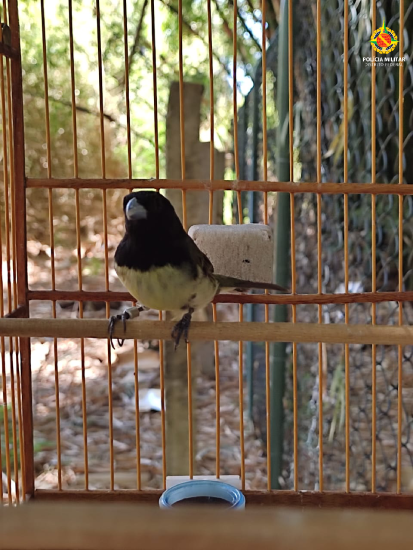 No local, foram apreendidas um Coleirinho (Sporophila caerulescens) e quatro exemplares de Baiano (Sporophila nigricollis), totalizando cinco aves. Também foram confiscados um alçapão para captura de aves e cinco gaiolas.