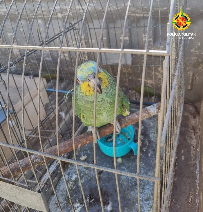 Policiais militares do Batalhão de Polícia Militar Ambiental apreenderam um papagaio-verdadeiro, que estava sendo criado em cativeiro, por volta das 10h de segunda-feira (4), em Samambaia.
