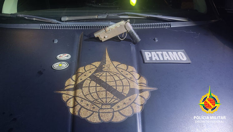 Policiais militares do Patamo apreenderam uma arma de fogo de fabricação caseira na madrugada deste domingo (27), no Recanto das Emas, por volta da meia noite. A arma de calibre 38 foi abandonada pelo suspeito que fugia dos policiais em uma área de mata.