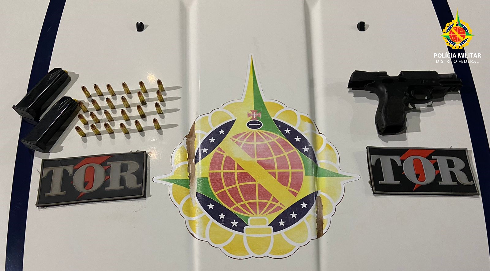 A motocicleta com placa do Pará foi abordada pela equipe do TOR. Na busca veicular foi constatado que o chassis do motor estava adulterado e que tinha restrição de roubo desde 2017. A placa original da moto era do DF. Uma hora depois um carro foi abordado indo em direção a Brazlândia. Na cintura de um dos passageiros foi encontrada uma pistola 9mm, dois carregadores e 78 munições.
