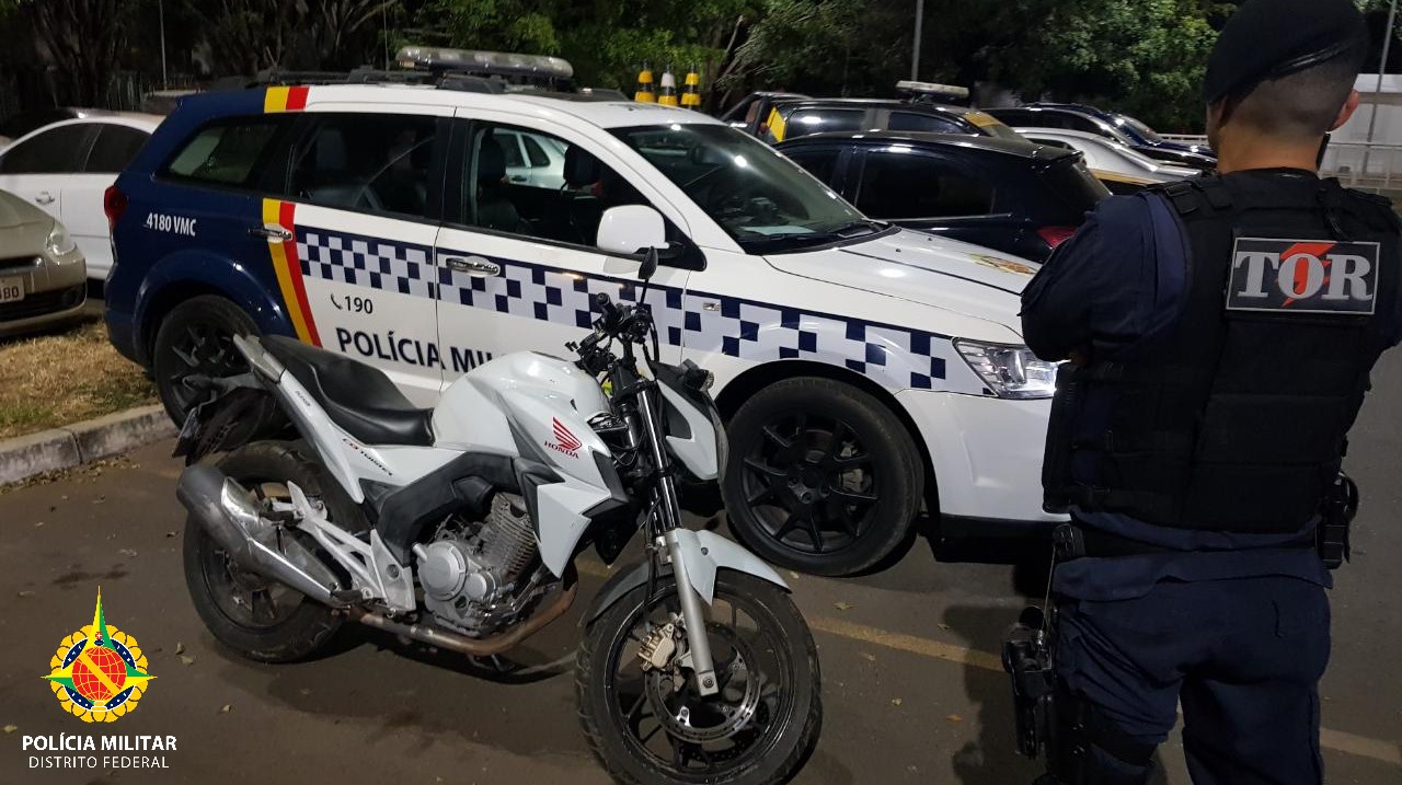 Policiais militares do Tático Operacional Rodoviário (TOR) recuperaram uma moto roubada e apreenderam uma pistola em abordagens realizadas em Ceilândia, na madrugada desta segunda-feira (30).
