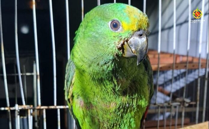 Os policiais do Batalhão Ambiental apreenderam, nesta quarta-feira (9), dois pássaros que eram mantidos em cativeiro em Sobradinho. Um bicudo e um papagaio ficavam presos em gaiolas na frente das casas chamando a atenção de quem passasse por lá.