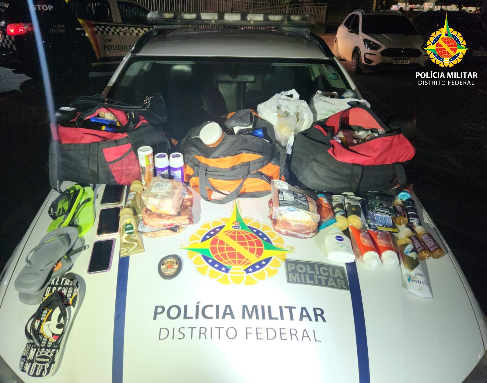 Na noite desta sexta-feira (17), por volta das 21h45, a equipe de RP 22, durante patrulhamento em Taguatinga, foi acionada por populares informando que três mulheres haviam praticado furto no Supermercado Superbom. Imediatamente, a equipe partiu em patrulhamento e encontrou um veículo Corsa com diversos produtos em seu interior.