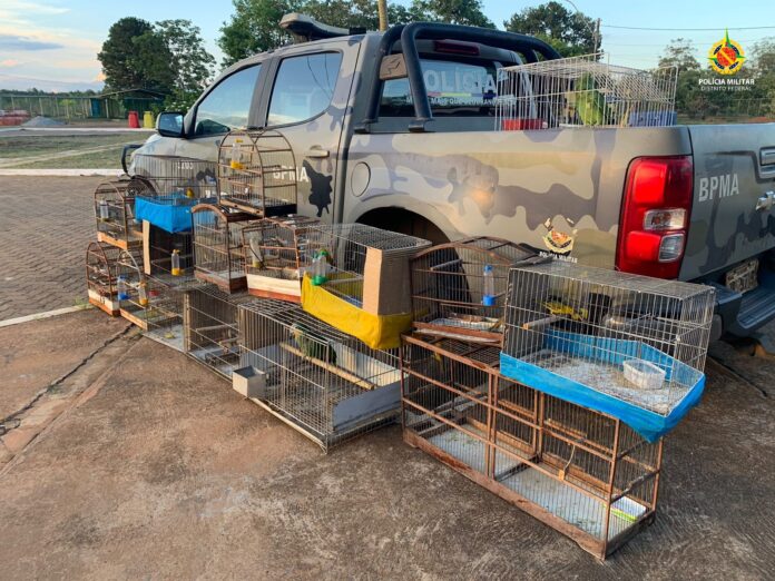 Os pássaros, doze canários da terra, dois baianos, quatro bigodinhos, um coleirinho, dois papagaios verdadeiro e 15 gaiolas foram encaminhados ao Centro de Triagem e Reabilitação de Animais Silvestres (Cetas).