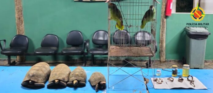 Na tarde desta sexta-feira, 24, a PMDF, por meio do Grupamento de Operações no Cerrado, foi acionada para verificar uma denúncia de criação irregular de aves da fauna silvestre na área do Paranoá-DF.