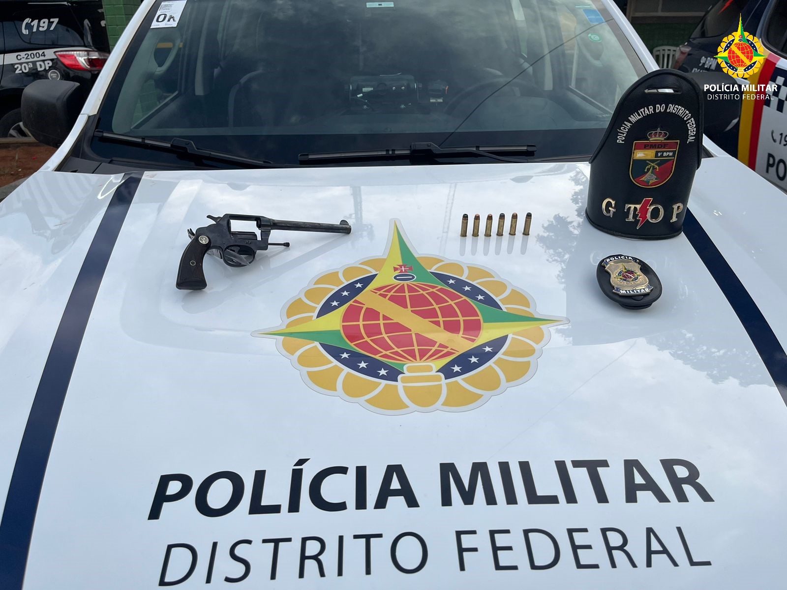 Policiais militares do Grupo Tático Operacional do 9º Batalhão (Gtop 29) apreenderam um revólver calibre 38, às 17h deste domingo (8). A equipe da PMDF visualizou o suspeito na DF 475, próximo ao cemitério do Gama, ele arremessou a arma de fogo e fugiu em direção ao Condomínio Mansões Paraíso.