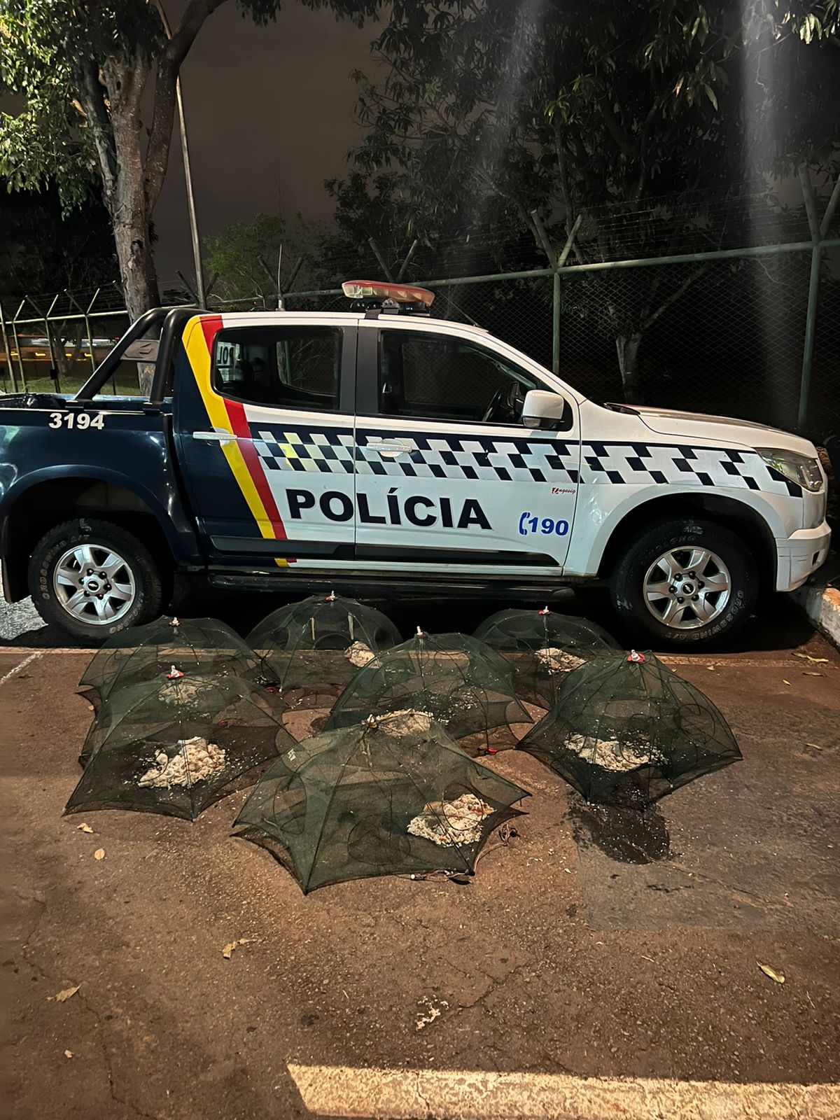 Ao abordá-los, os suspeitos assumiram a posse do material e informaram que não havia autorização para pescar.