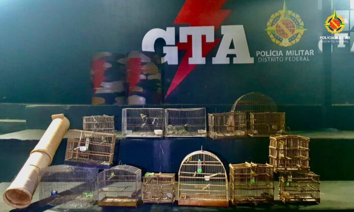 Os policiais do Grupo Tático Ambiental (GTA) do Batalhão de Polícia Ambiental apreenderam diversas gaiolas e 9 pássaros silvestres, nesta quarta-feira (9) em Sobradinho.