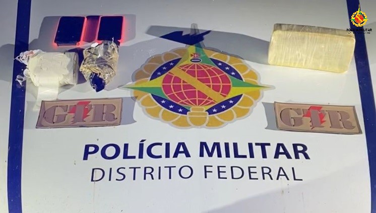 Os policiais localizaram a sacola com uma barra de crack e embrulhos com cocaína.