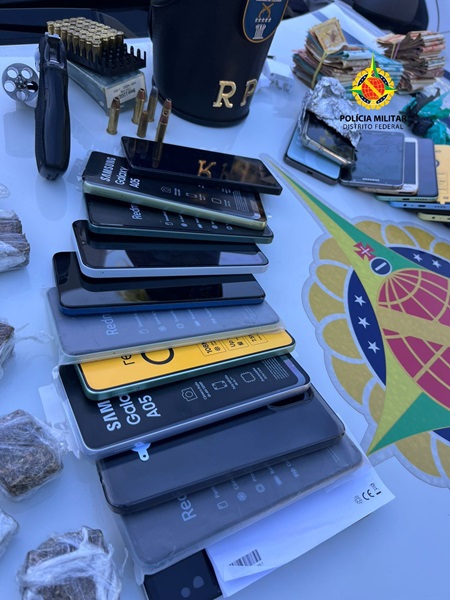 Os policiais militares do 8º Batalhão apreenderam duas armas e recuperaram 27 celulares após um roubo em uma loja de celulares na QNN 18, em Ceilândia.
