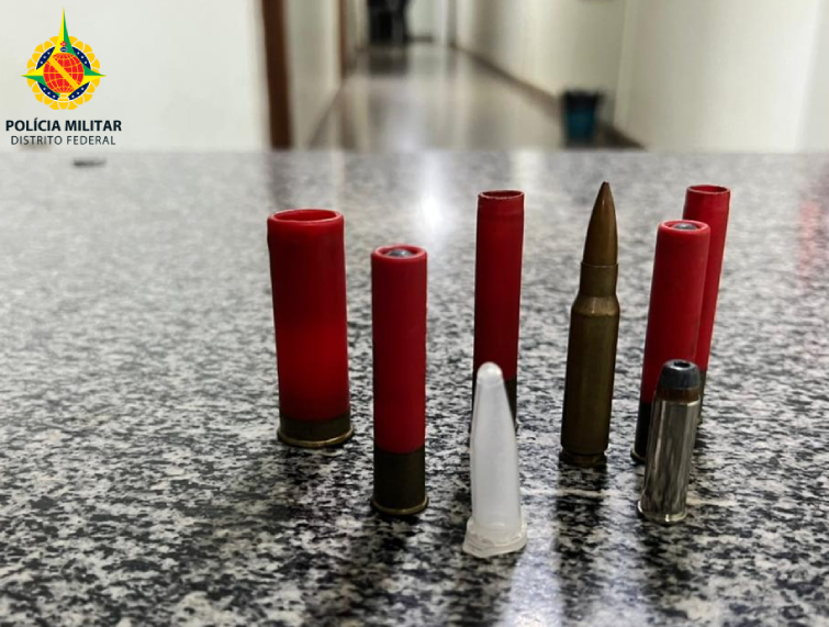 Com autorização da vítima, os policiais realizaram uma varredura no imóvel e encontraram seis munições de arma de fogo, sendo uma de fuzil calibre .308 e uma porção de cocaína.