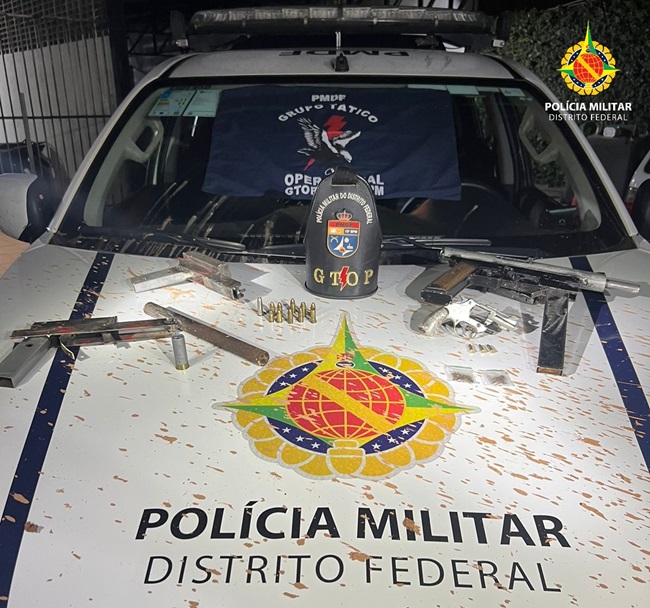 Policiais militares do Grupo Tático Operacional do 15º Batalhão (Gtop 35) apreenderam quatro armas de fogo e munições na rua 44 do bairro Santa Luzia, na Cidade Estrutural. O fato ocorreu por volta das 19h30 desta quinta-feira (22).