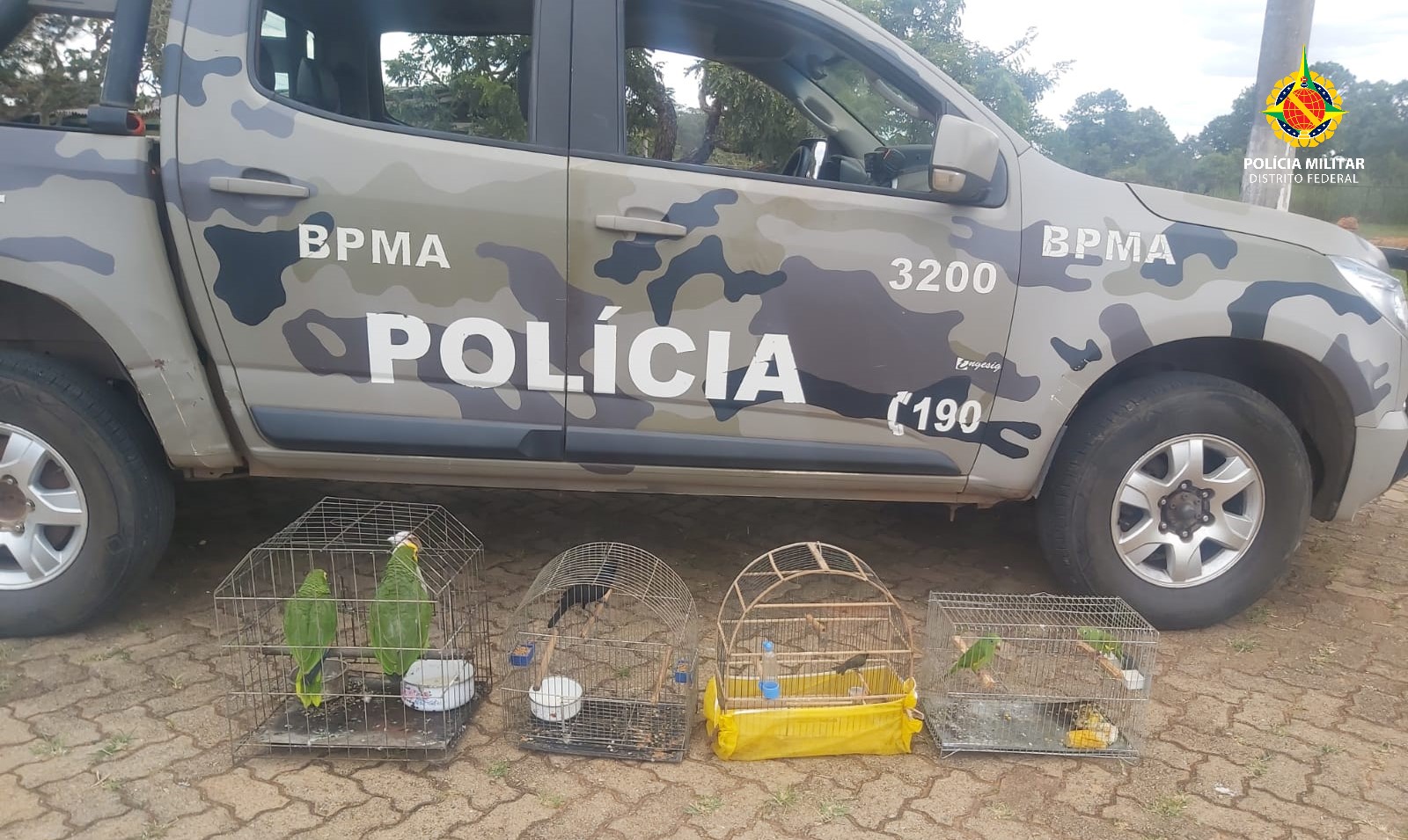 Policiais militares do Batalhão de Polícia Ambiental (BPMA) apreenderam seis aves silvestres em uma casa no conjunto K da QR 416 de Santa Maria, na manhã desta quinta-feira (10).