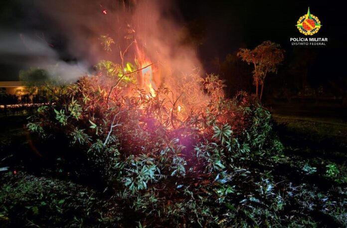 Os policiais foram chamados para uma situação de atividades de supressão de vegetação e queima de material no Altiplano Leste. No local, foi confirmado que se tratava de manejo em vegetação lenhosa exótica, sendo utilizado quatro motosserras sem as devidas Licenças de Porte e Uso (LPU). Além disso, o ato de queimar o material resultante estava gerando uma considerável quantidade de fumaça na vizinhança.