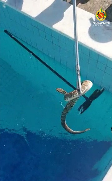 Na manha desta quinta(14), policiais militares do Batalhão Ambiental foram acionados para resgatar um cobra, em uma piscina no SMPW quadra 17 conjunto 6, Setor de Mansões Park Way.