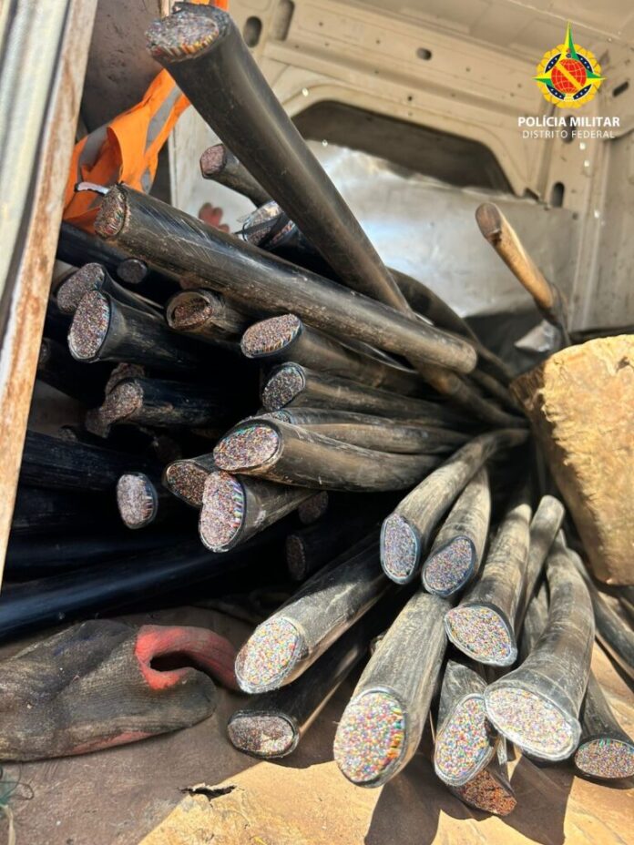 Policiais do 7º Batalhão prenderam cinco criminosos em flagrante e, com eles, foram apreendidos 120 metros de fios de cobre, pesando aproximadamente 300 kg, com valor estimado em R$ 12.000,00. Além dos cabos, foram confiscados diversos equipamentos usados para a prática do crime, incluindo instrumentos de corte e uma máquina de fusão T400s, avaliada em cerca de R$ 20.000,00.