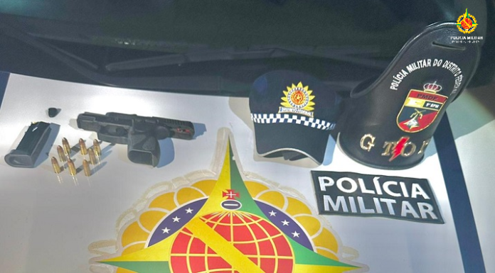 Os policiais militares da área iniciaram patrulhamento localizando o veículo nas proximidades da Q. 04. O condutor foi abordado e informou que se tratava de veículo de aplicativo. Feita a revista pessoal foi encontrado uma pistola Taurus G2C 9mm com 8 munições intactas