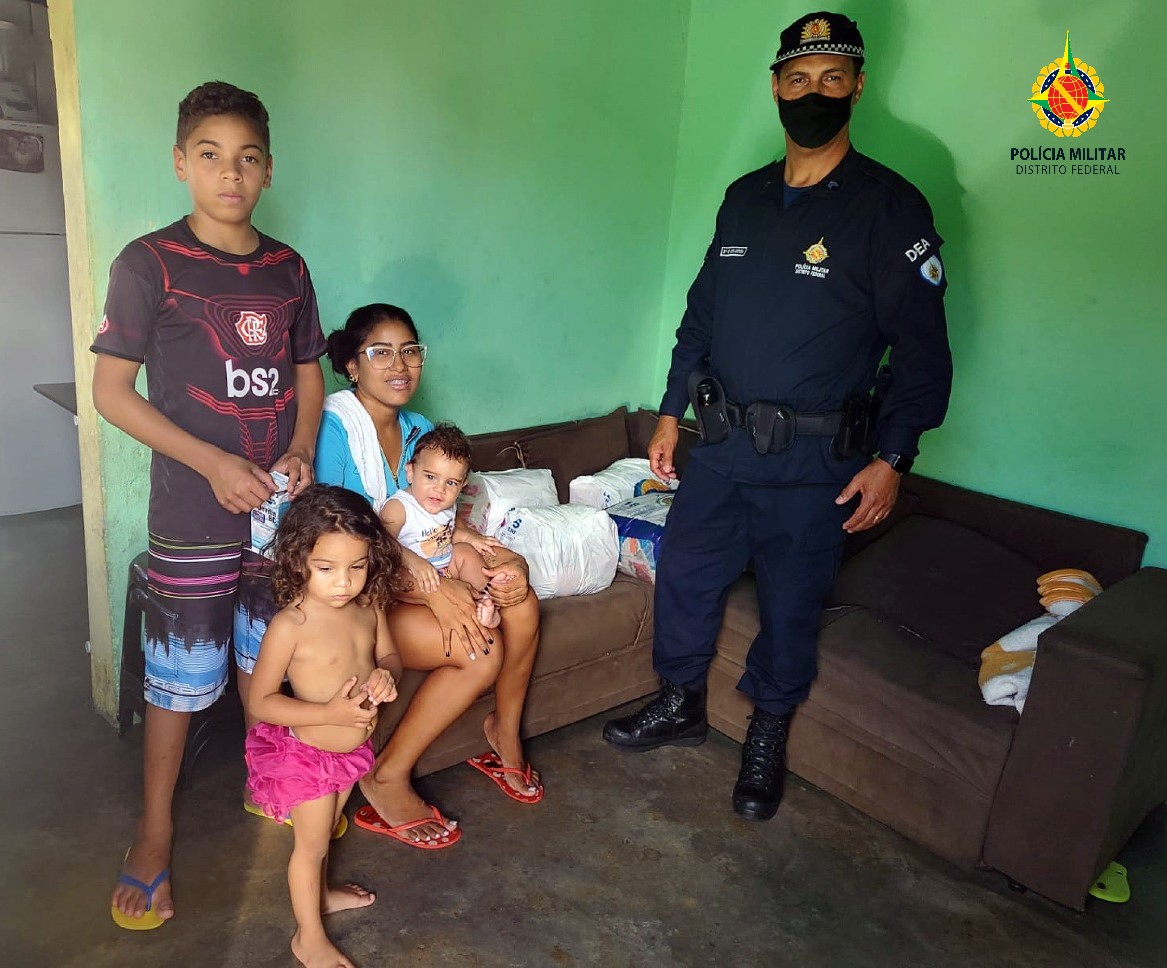 Sua filha, Bruna do Nascimento, recebeu os alimentos, agradeceu à atenção dos policiais militares e ressaltou a importância de serem agraciadas pela campanha.