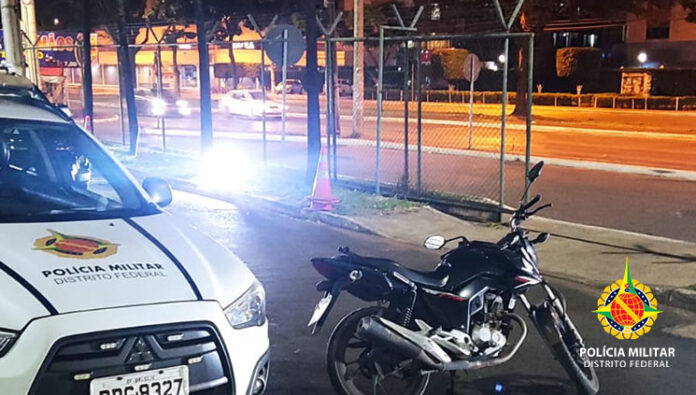 Policiais militares do Radiopatrulhamento do 8º Batalhão recuperam moto furtada em Ceilândia, por volta das 20h deste sábado (23). Ao realizar patrulhamento no SHPS QD. 501 frente ao conjunto H, na Vila dos Carroceiros, houve informações que esse local está sendo usado para guardar e esfriar motocicleta roubadas/ furtadas.