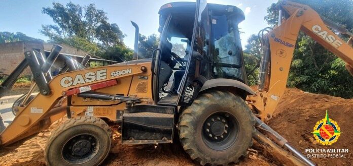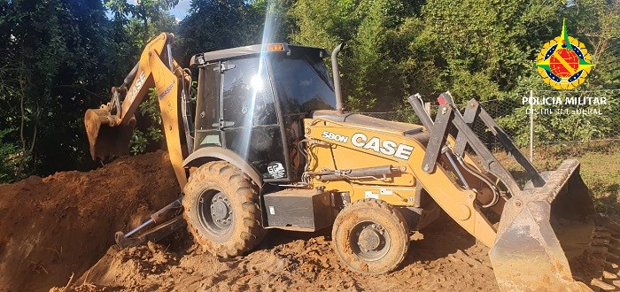 No local, os policiais flagraram um homem em uma retroescavadeira executando obra em área de preservação permanente. Ao indivíduo foi lhe perguntado se teria licença ou autorização dos órgãos competentes para a execução daquele serviço, o que foi negado.