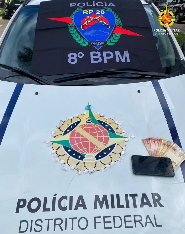 Policiais militares da equipe de Rádio Patrulhamento do 8º Batalhão (RP28) prenderam um homem que portava 39 papelotes de substância que aparenta ser cocaína. O fato ocorreu por volta das 15h deste domingo (24), na QNN 3 de Ceilândia. O detido foi levado à 15ª Delegacia para registro da ocorrência.