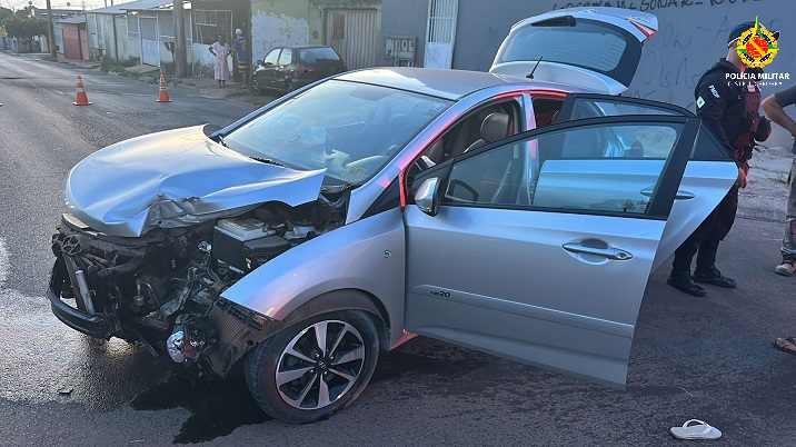 Os policiais se depararam com um veículo que acabara de ser roubado. O veículo estava sendo conduzido por dois indivíduos que ao avistaram a viatura empreenderam em fuga. Durante a fuga eles bateram o carro e foram detidos. Eles portavam uma faca utilizada para o roubo.